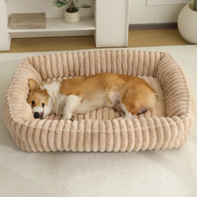 Large Waterproof Dog Bed Sofa — Plush Square Pet Bed for Dogs & Cats (All Seasons)