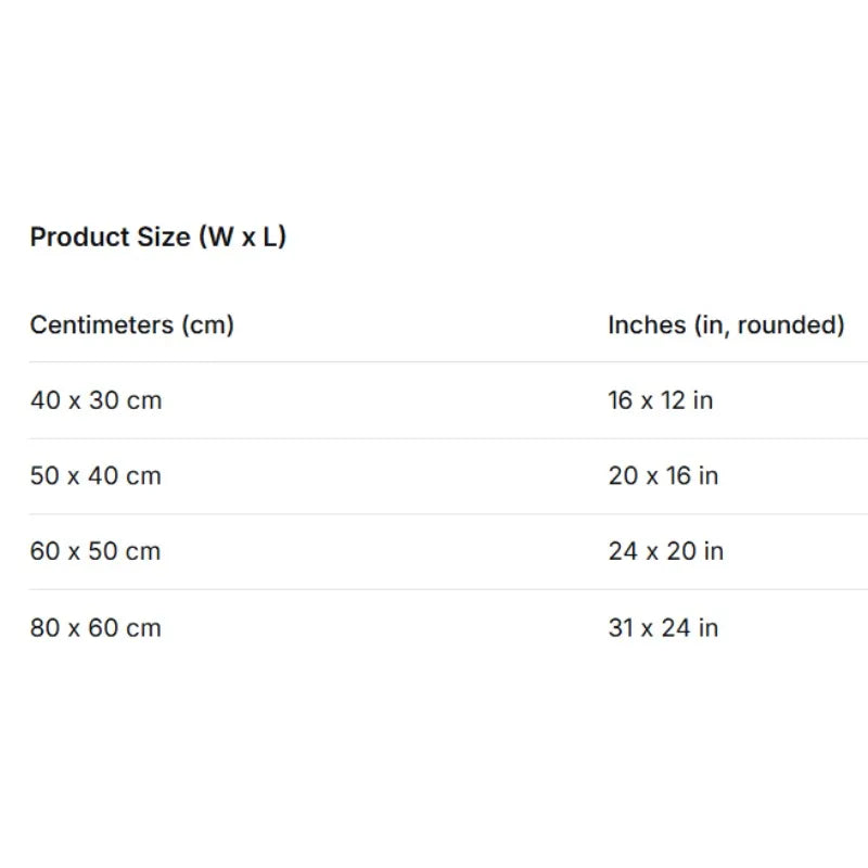 | 2XL | 100 × 80 cm | Up to 40 kg |